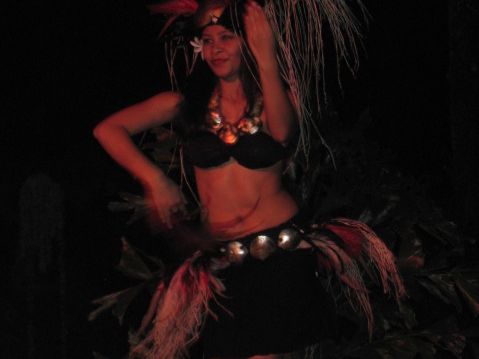 7時30分を過ぎるとショーが始まります。南国のダンスショーは数々見ており、今回目新しいものは特にないのですが、むろん華やかなフラダンス、激しいファイヤーパフォーマンス、それを盛り上げるMCは健在で、楽しめる内容が充分盛り込まれています。初めて見る娘は楽しそうに見ていました。