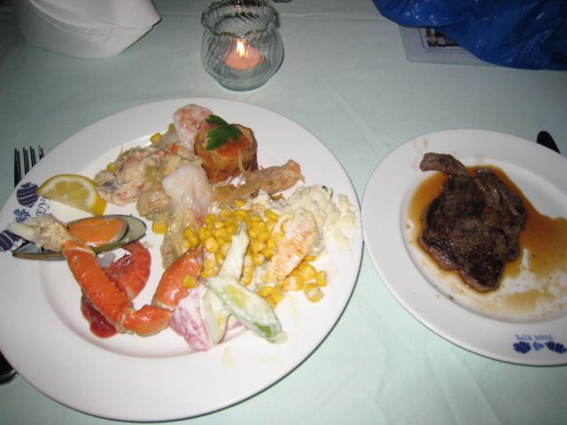 食事はビュッフェ形式で、どれもおいしかったです。特にシーフード料理が美味しかったです。テーブルのキャンドルの明かりがいい雰囲気でした。