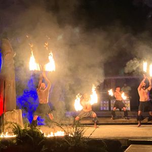 男性の力強いファイヤーショー、女性のたおやかなダンス、距離が近いことで迫力もあるし、時間が長すぎず短すぎずちょうど良くて飽きることなく観ていられます。