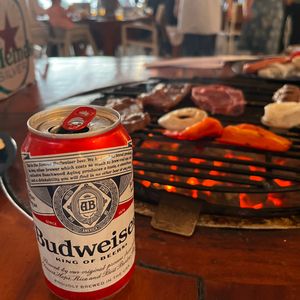 150gのビーフが4枚もあり、それだけで満足の上、いか、えび、骨付きカルビ、チキン、フルーツ、そうめんなど食べ放題になっており、最後にはいちごアイスまで配って下さり最高でした。