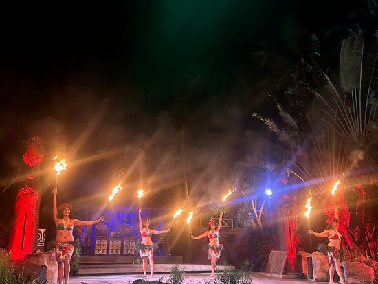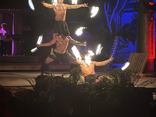 ショーは圧巻でした。役者が客席側から登場したり、船で登場したり、舞台にお客が呼ばれて一緒にダンスするなど、1時間の間に次々と展開が変わり予想以上の迫力とパフォーマンスに大満足です。次にグアムへ旅することがあれば、また参加したいと思います。