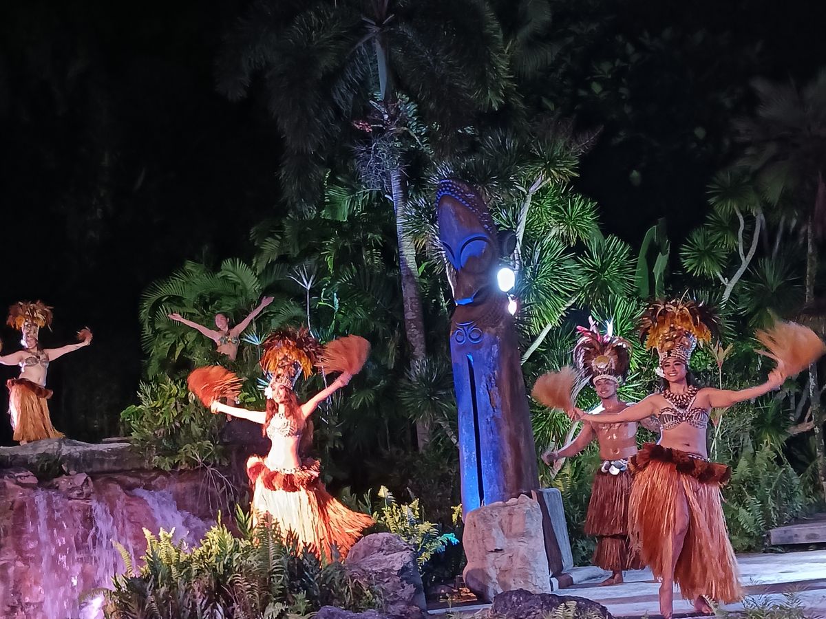 バーベキューを楽しみながら、ポリネシアンショーを楽しむことができます。ショーでは最後にみんなで踊ったりと、楽しい思い出になりました。