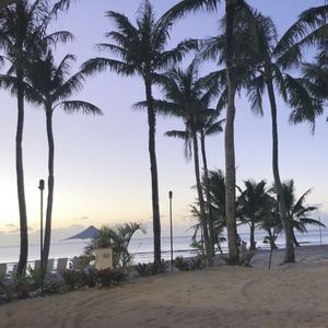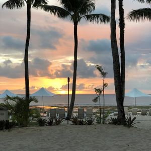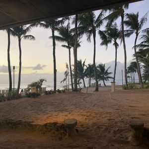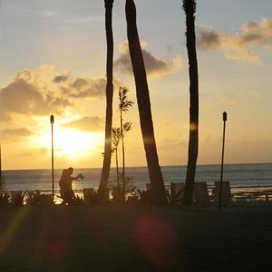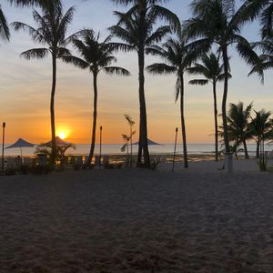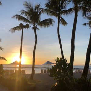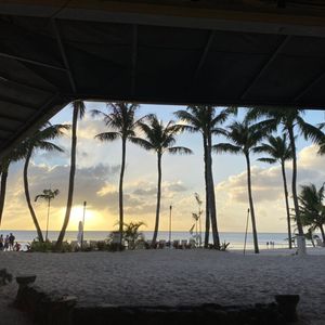 バスで自分たちのホテルに迎えに来てくれてショーがあるホテルに着いてからBBQが始まるまでにビーチに出れてちょうど日が暮れる頃で夕日がとても綺麗でした。ポストカードにそのままなれそうなくらい素敵な景色でした。