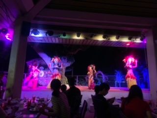 海に出て夕日が落ちるところを写真におさめ、すぐ側にあるBBQ会場で受付。お肉やエビは席にスタンバイされているので、サラダ等のバイキング料理を取りに行き夕飯スタート。ちょうど食べ終わる頃にショーがはじまるので時間配分がよかったです。ショーも大満足でした。