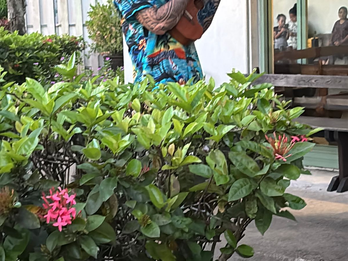 最後にハイビスカスのレイをくれて、一緒にダンサーと写真を撮りました。