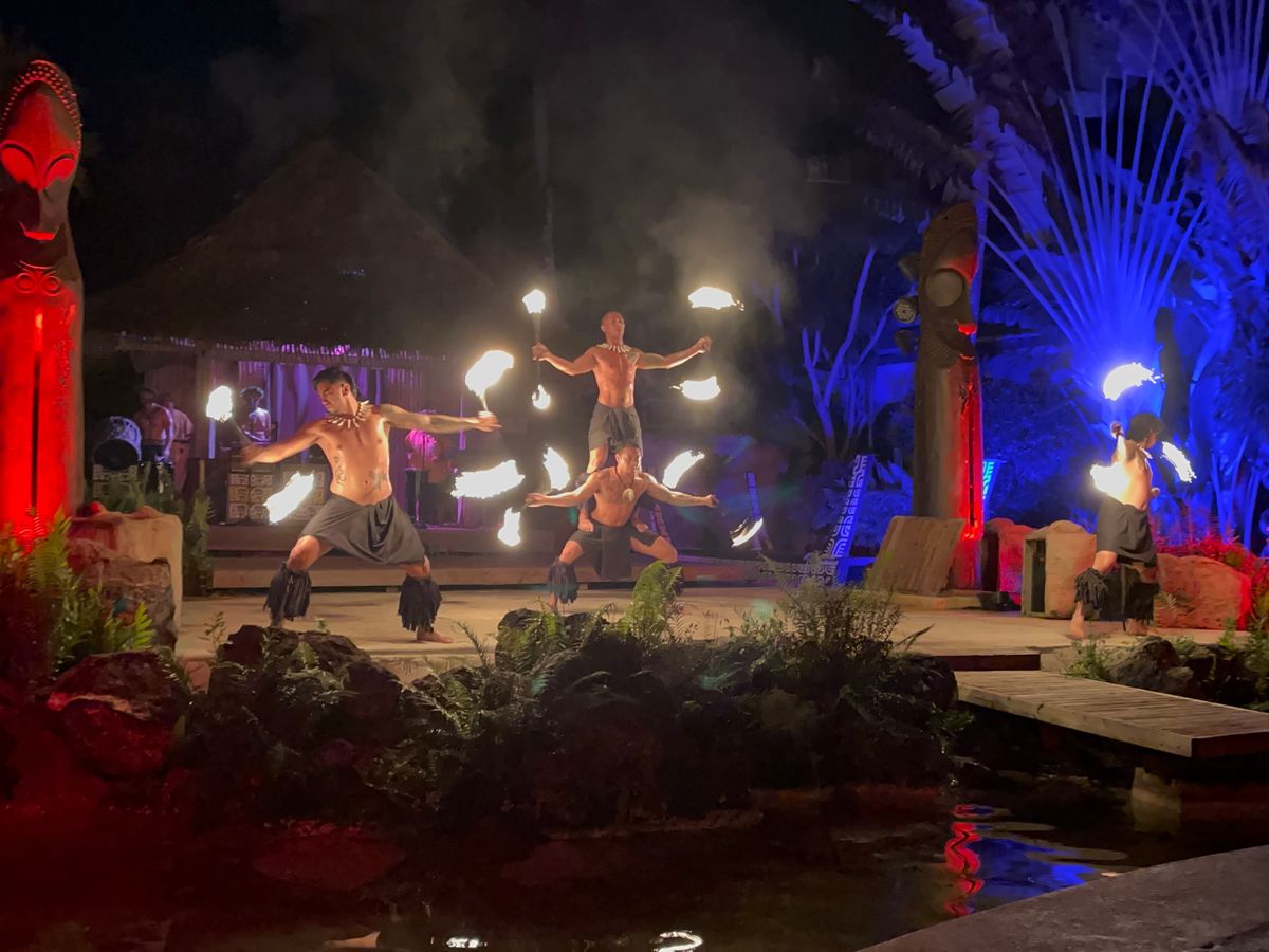 ショーは圧巻でした。役者が客席側から登場したり、船で登場したり、舞台にお客が呼ばれて一緒にダンスするなど、1時間の間に次々と展開が変わり予想以上の迫力とパフォーマンスに大満足です。次にグアムへ旅することがあれば、また参加したいと思います。