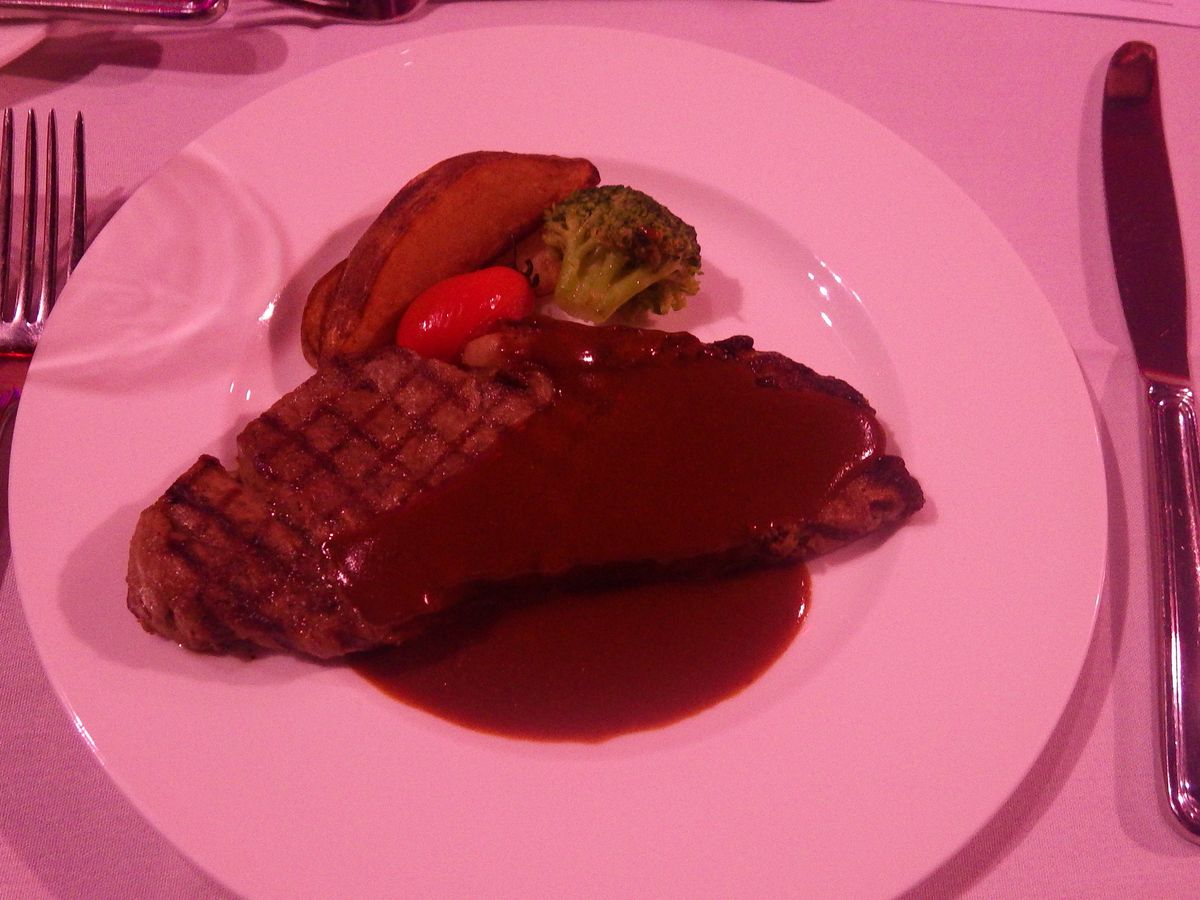 ステーキはおいしかった。でも1時間開催されるショーはワンパターンでうんざりしてしまった。30分で十分。