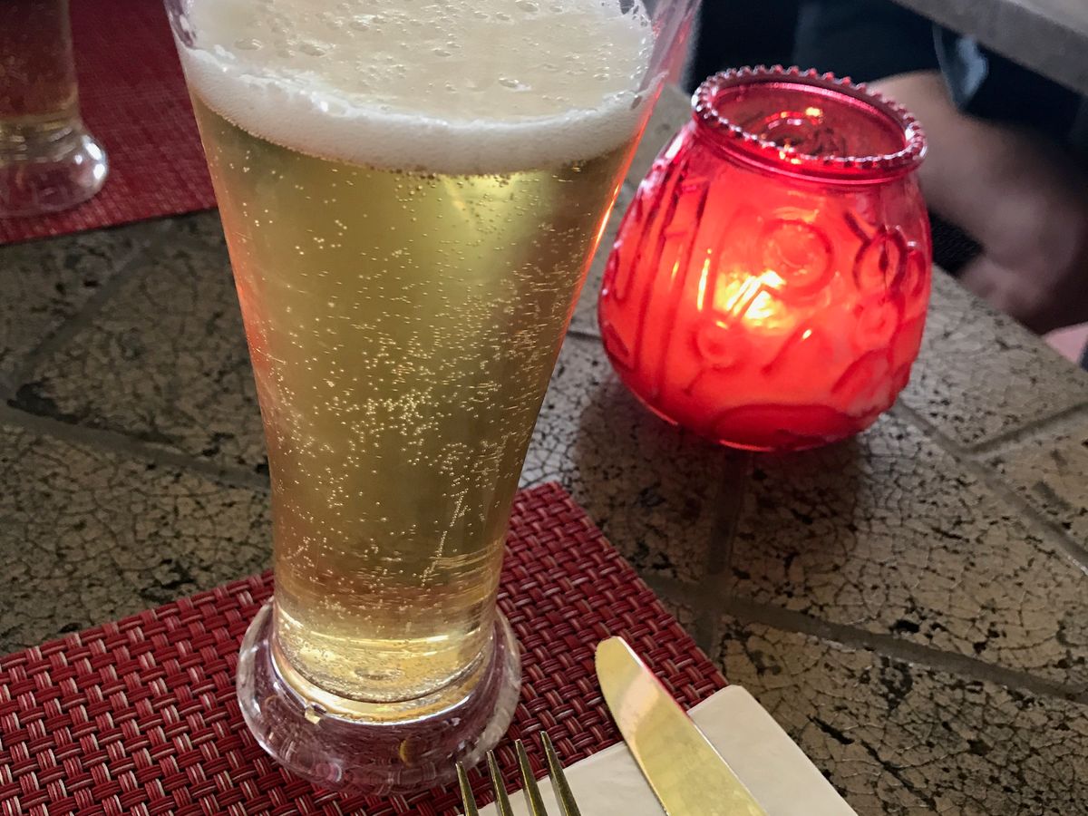 飲み物は、私はビールを飲んだのですが、自分のテーブルに既に氷入りのバケツにどっさり缶ビールが入っており、その時点でテンションマックスでしたね!奥さんはパイナップルジュースを飲んでたのですが、それもなかなか美味だと。