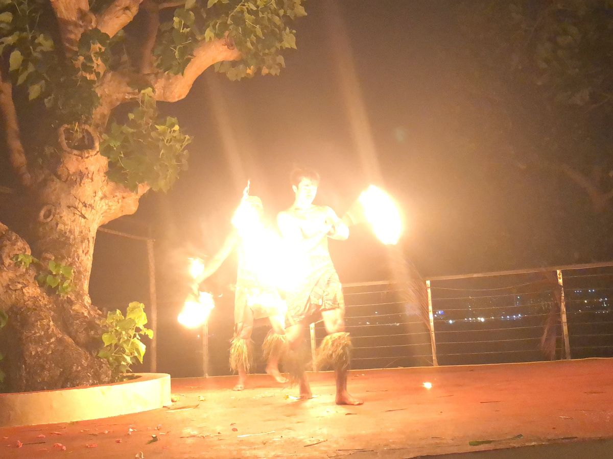 ダンスはフラや、歌、迫力あるナイフやファイヤーダンスでたのしめました。