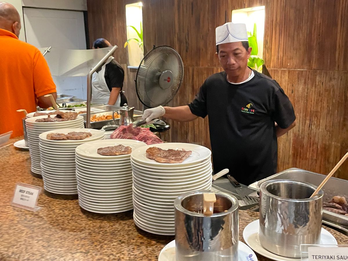 食事開始1時間後にショーが始まるが、見ることに熱中してる間にラストオーダーを迎えるため、見ながら食べ続けるか、始まるまでに満足するまで食べておく必要がある。