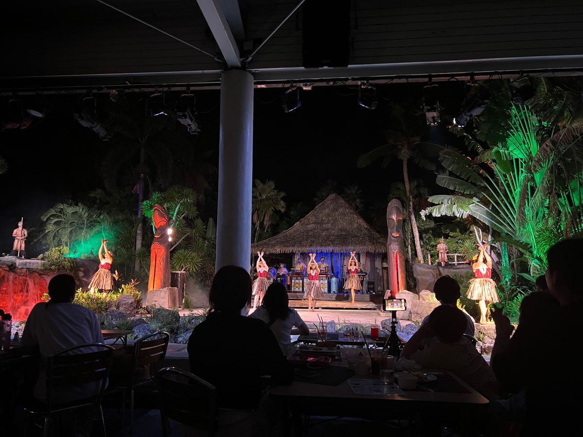圧巻のステージで、グアムの伝統も感じることができました。料理はポキが美味しかったです!ステージだけでなくフロアでもダンスがあり、どの席でもある程度楽しめるのではと思います。