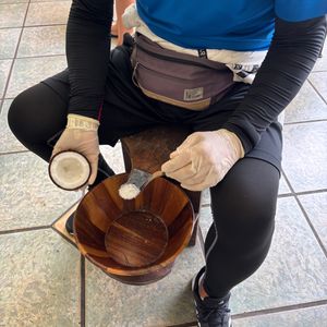 ココナッツの若い実からココナッツジュースを飲み、熟した実からココナッツを取り出し、搾ったらココナッツミルクの出来上がり!