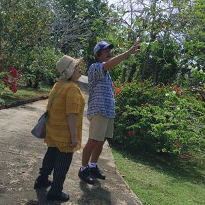 植物園のガイドも、丁寧にわかりやすくしてくださいます。コットンツリーが大きく、なんとも可愛らしかったです。熟してコットンになった部分を見てみたかったです。パンの木も面白いですね。