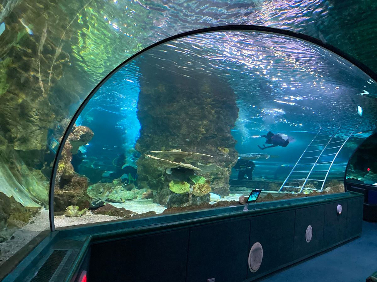 ちなみに、当水族館の長いトンネル式水槽は世界でも指折りの長さであり、