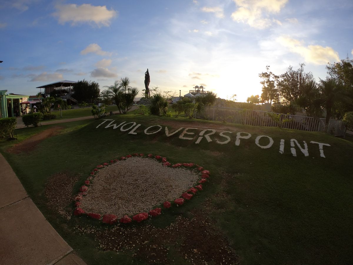 夕陽の時間を調べて、グアムの中心部のDFSからバスに乗り恋人岬へ10数分で到着です。バスと岬の展望台の入場券がセットなのでお得です。