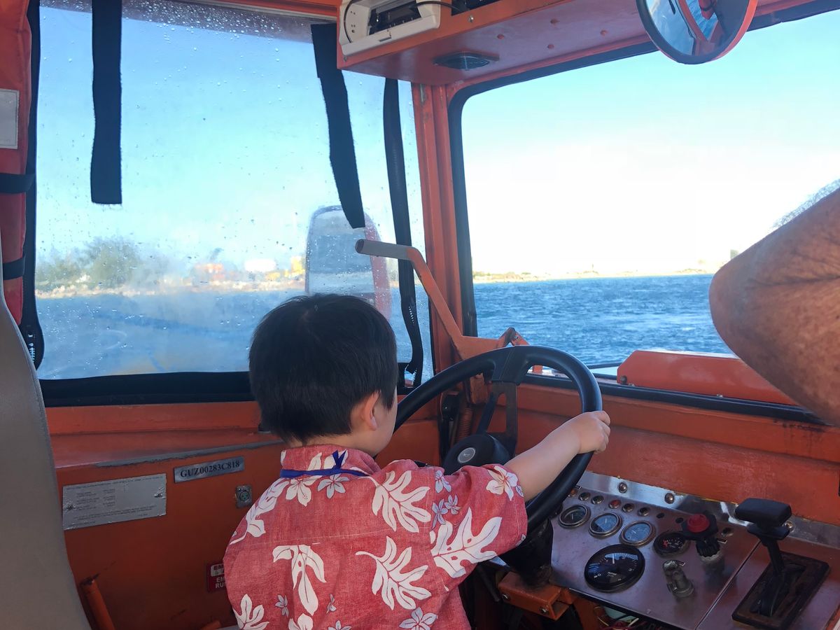 海への「ザッブーン」は迫力があって楽しかったですし、子供たちもハンドルを握らせてもらったので、そこはよかったです。