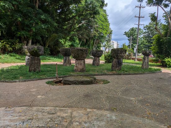 また、グアムの歴史…チャモロ人の時代→スペイン統治→アメリカ統治→日本統治→アメリカ統治、などわかりやすく説明していただきながらスペイン広場、ラッテストーン公園、アプガンの丘などまわっていただき、子どもたちも興味を持って楽しむことができました。