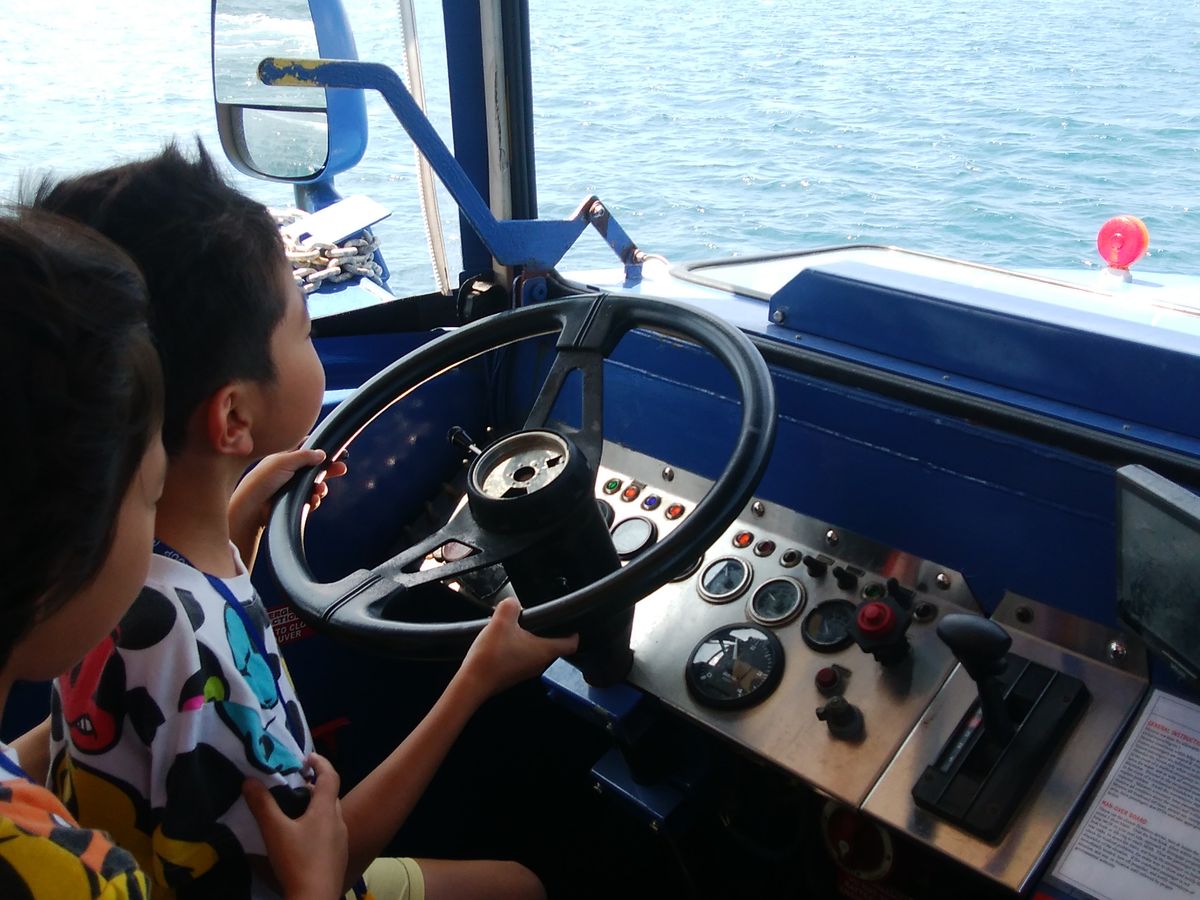 海に入ったところで運転させてくれたり、あひるの笛を吹いたり、小さい子も楽しそうにしていました。