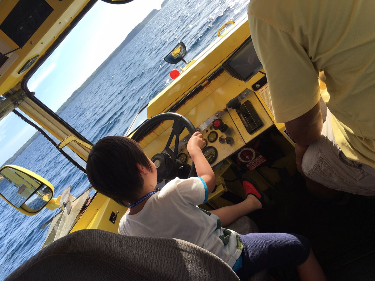 海に入ると運転もさせてくれてテンションあがっていました。