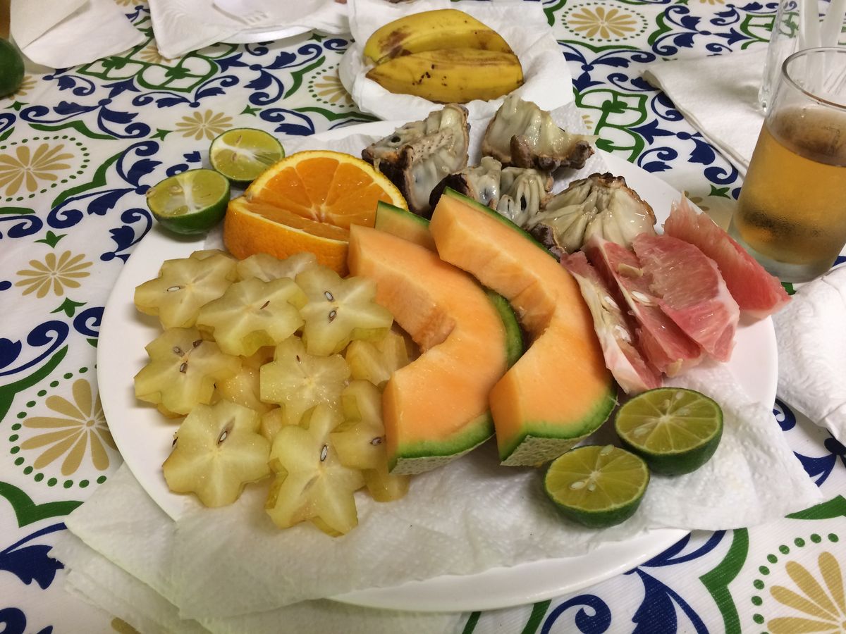 植物鑑賞を終えてから、室内でフルーツの試食をしました。日本ではなかなか食べられないフルーツは、どれも美味しかったです!看板犬のビリー君も人懐っこく、とても癒される時間でした。