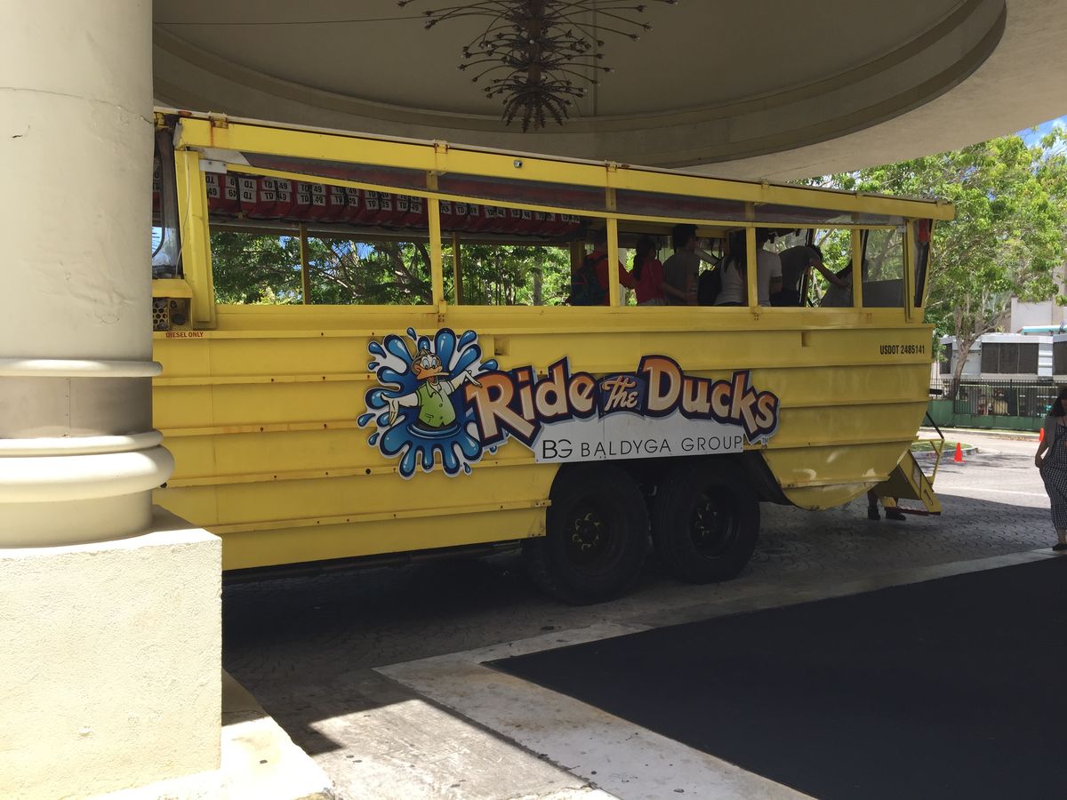 チェックインする場所がサンドキャッスルの庭?側だったのがわからず・・ずっとサンドキャスルの前で待っていました。ドライブしながらざぶーんと海に入ったときは「拍手」がおこり楽しかったです。参加者4名でこのバスの前でバスが全体写って4人だけの写真を撮りたかったのですが他の方が写ったり交代で撮っていると他の方の迷惑だったり全体が写らなかったりと中々グループでは撮れなかったので、乗る前か後にグループごとに写真を撮れる方法があるといいかなぁーと思いました!(お上りさん状態で「ど観光」おばちゃんたちにはそんな記念の写真が欲しかったです。みんな楽しんだのでよかったです♪