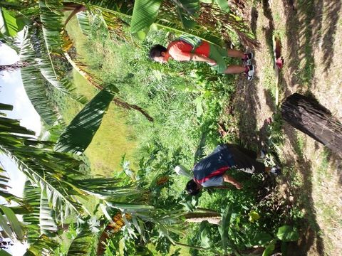 散策後出されたフルーツには珍しいものもあり、ココナツジュースを飲んだ後のココナツを割り、スプーンでそいだ半透明のトロトロのココナツをわさび醤油で食べるココナツの刺身は絶品でした。