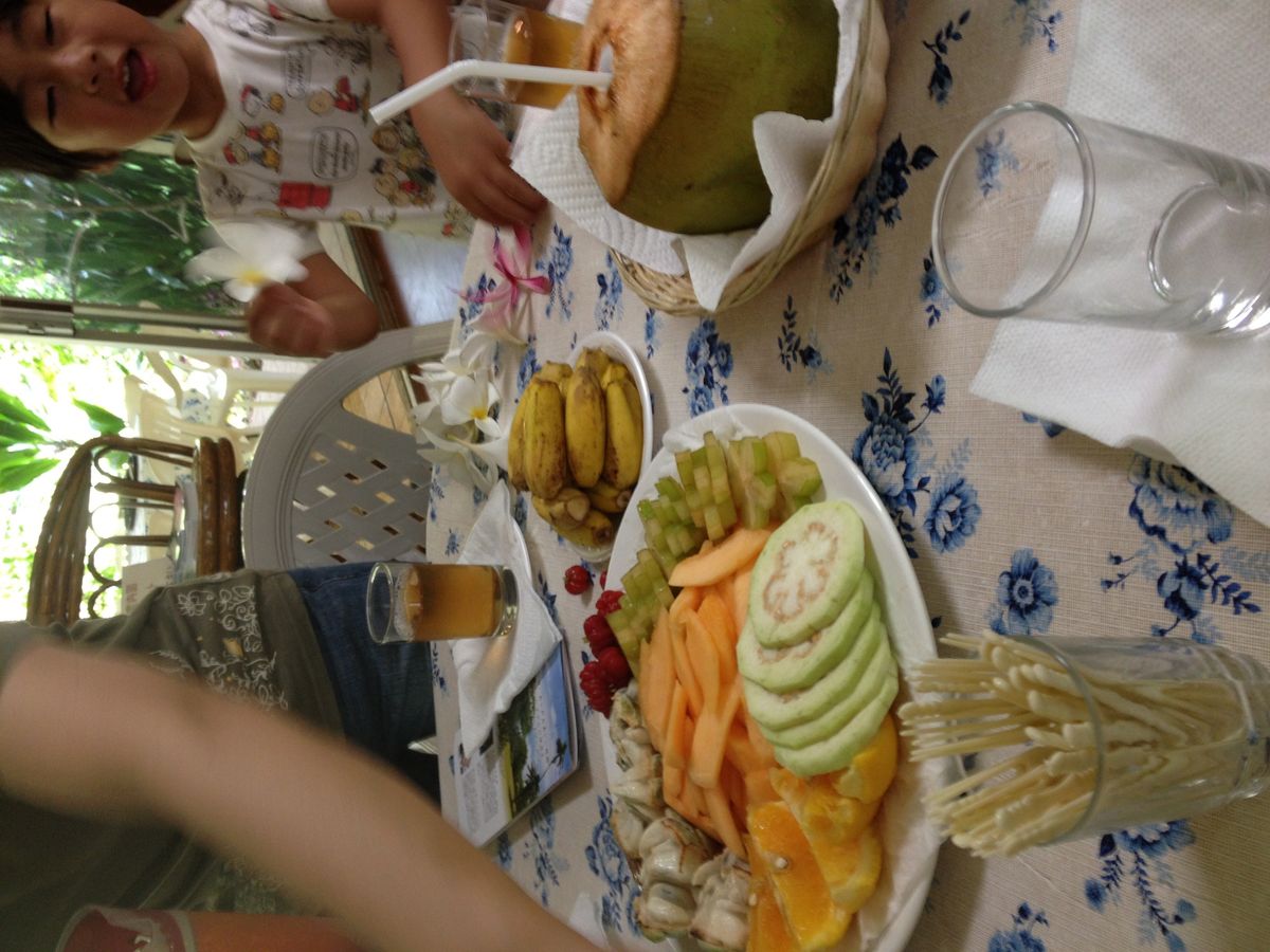 見終わったころに、冷たい麦茶とココナッツジュース。それにおなか一杯になるくらいの珍しいフルーツが出てきました。スターフルーツやバナナは知っていましたが、半端なく酸っぱいフルーツには大爆笑!良い経験です。
