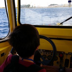 天気が良かったので、ドライブは楽しく、入水時にはキャプテンと運転を交代してもらって5歳の男の子は大喜び。あひる笛をブーブー盛大に吹き鳴らせるのも楽しかったようです。