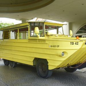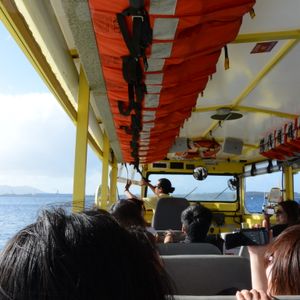 洋上航行場所までは、少し時間が掛かりますが天気さえ良ければ、風に当たりながらの路上走行は快適でした。肝心の洋上航行は、波の静かな場所を選んであるようで、外洋の様な波も揺れもありませんでした。子供達を優先して、運転席での体験も実施されていました。