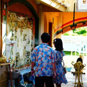 他にもステージ裏の南国の木が生い茂る場所での撮影もしていただきました。撮影は衣装を着たスタッフさん。植物の説明をしていただきながらの撮影でとっても楽しかったです♪日本ではなかなかお目にかかれない植物、景色、そして民族衣装を着せてもらえた事…