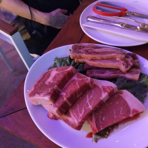 今回はミートバーベキューにしました。2人で行ったのですが、ステーキサイズのお肉が3種類×2枚ずつと、鳥もも肉4枚出てきました!