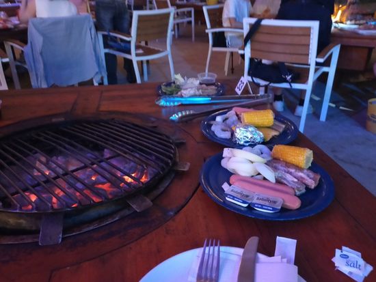 海の目の前のBBQは雰囲気がとてもよく、夕方のサンセットがとてもきれいでした。暗くなると、ファイヤーショーが始まり、みんな大盛り上がりで楽しかったです。食事もボリュームがあって普通に美味しかったです。