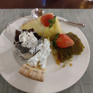旅の終盤、だいぶ胃が疲れていたので、あまり食べられませんでした。チャモロ料理の他、和食や肉料理など、とても種類が豊富で、お酒もいろいろ飲めました。デザートのレベルが高かったと思います。