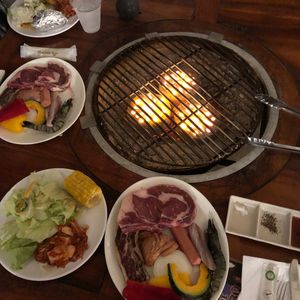 1歳2ヶ月の娘を連れていきました。子供椅子を用意してもらえました。食事はガッツリ肉と、サラダバー、白米、素麺、キムチ、トウモロコシ、じゃがバター、フルーツでした。子供がぐずっても何も気にせずにいられる会場だったので、楽しく時間を過ごせたと思います。