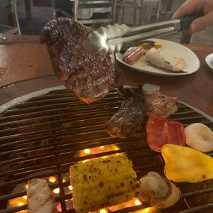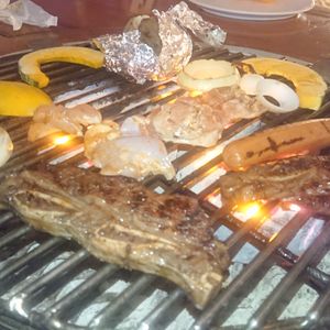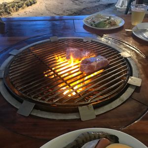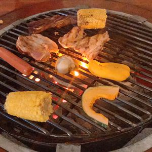 帆立、チキン、ソーセージ、かぼちゃ、パプリカ、玉ねぎ、伊勢エビ、エビ、魚、全て美味しかった。炭も途中で追加してくれて、火が弱まる事無くいい感じで焼けた。