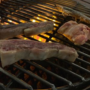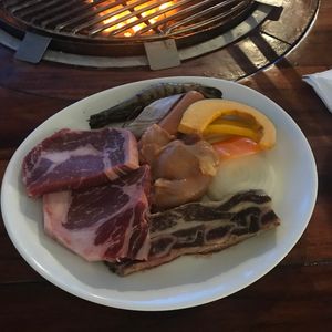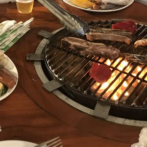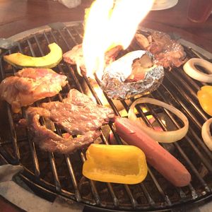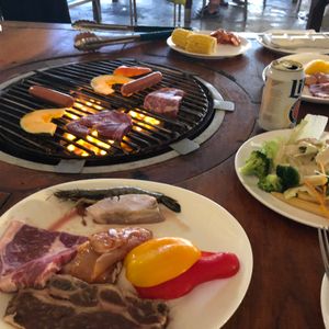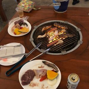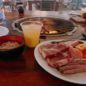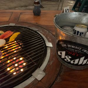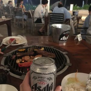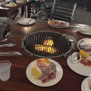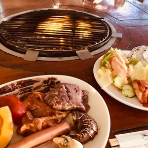 着いた人から飲み物をカウンターで注文して、白米やキムチ、サラダ、などはバイキング形式になってるのでそちらから取って、早速バーベキューが始められるようになっていました。