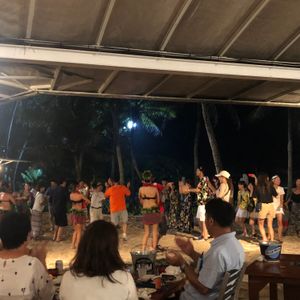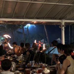 バスの送迎ありだったのでとても助かりました!遅れることなく時間通りに来てくださったのですぐに乗り込むことができました。BBQ会場に着いたあとも、スタッフのお兄さんやお姉さんが気さくに話しかけてくださったり、いたずらをされたりなど、とても楽しく過ごせました。また、接客サービスも良く、お肉やお魚も美味しくて、非常に満足です。客層は日本人のカップルや家族が多め。今日はその中の小さい子どもの誕生日で、ショーの途中にみんなでお祝いするというプログラムもありました。更に、ショー終了後プロポーズしているカップルもいて、その際にはbgmをセレクトされたもの?に変え男性が歌を歌うなどの盛り上がりもありました。対応はよさそうです。ショーに関しては、少し遠かったのですが火のついた棒?を振り回すアクションは必見ものです!ナレーションの盛り上げもよく、ノリノリでした。スタッフのみなさんは日本語が割と分かるので、安心して過ごせました。ありがとうございました、