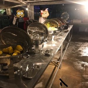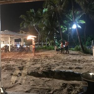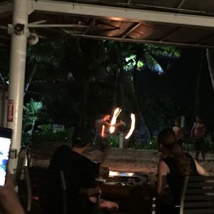 ホテルニッコーのバーベキューディナーに参加しました!あいにく大雨で、サンセットは見れませんでしたが、雨の中でも迫力のあるファイアーショー!スタッフの人たちもとても親切、フレンドリーで面白い方ばかりでした^_^ ビールの飲み放題で、缶ビールと生ビールとありました。サラダバイキングなどもあり、鶏肉、牛肉、お魚、ロブスターなど、色んな種類のお肉が食べれて大満足です♪最後はみんなでダンスをして、海外らしさも感じれました!台風を感じさせないほど楽しむことができました!