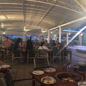 場所はわかりやすくて利用し易いですね!店内は思ってたよりも、綺麗では無かったけど、店内からビーチに出る事が出来て、泳いだり、砂浜を歩いたりする事が出来るので、子供とかカップルには良いと思う。料理は量が多くて食べきれないほど有った。美味しかった。飲み物は、アップグレードのハイボール有りにしていたのに、伝わって無く、直ぐにもらう事が出来なかったちょっと残念でした。