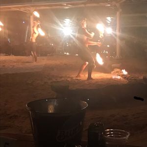 最初のロケーションも最高で、夕焼けを見ながらBBQをして、しばらく経つとショーが始まり、目の前で迫力のあるショーをやっていた!!