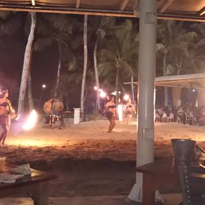 バーベキューも数種類の肉と魚と、エビもありお代わりできないほどの量がありました。飲み放題にしたのでビールをたらふく飲んでお腹いっぱいのところにファイアーショー!最高でした。子供も大喜び。