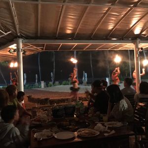 強いスコールでしたが、雨が止んだ時を見計らってファイヤーショーが開催され、素敵なショーを見る事が出来ました!!かなり盛り上がりました!!
