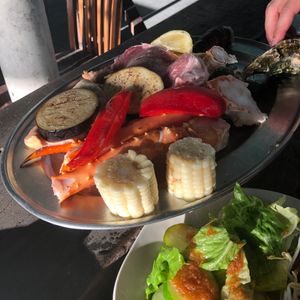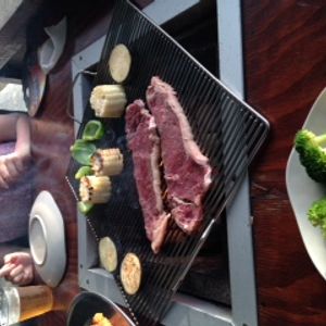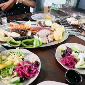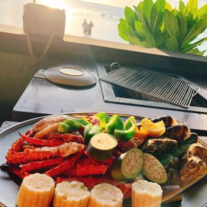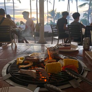 午後6時の予約で、天気も良くレストランに直で行きました。受付で名前を言ってほどなくテーブルに案内されました。夕日がちょうどいい具合できれいでビーチBBQとしては最高のロケーションでした。しばらくして食材が来たので網の上で焼き始まました。夕日とBBQの炭火で非常に暑く汗が滝のように出てきましたが、BBQの醍醐味だと思い我慢し食べました。BBQ自体は問題もなく大変おいしかったです。ウエイトレスもフレンドリーで程よくサービスしてくれました。次回も必ずBBQはこちらでお世話になろうと思っています。