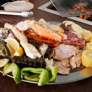 海のすぐそばで外の上、バーベキューの熱気で現場はかなり暑いです。汗だくで食べて飲んでって感じでした。オーシャンビューはとっても綺麗でした。飲み放をアップグレードしてワイン込みの予約でしたが当時注文するとよくわかっていないスタッフさんに「NO」と、飲み放題ではないと断られてしまいました。わざわざワインの飲み放だからここを選んで来たので納得行かず他のスタッフに聞いたりしてなんとかワイン込みにしてもらえましたが連携が取れてない感じがあり、納得いかないとものはしっかり主張しないと損する感じでした。結果オーライで今回は良かったですが…評価は思っていた通りと言うところです。
