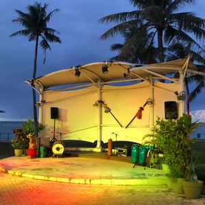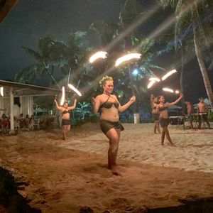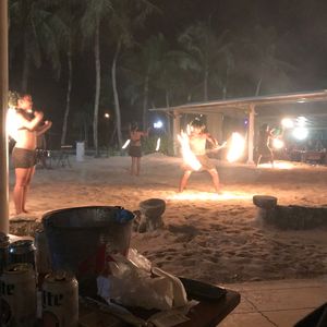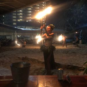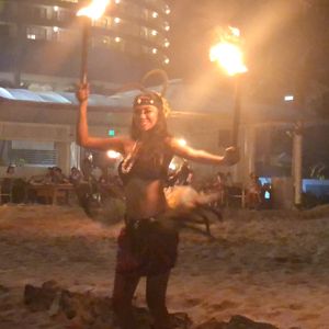 空も暗くなり始めた頃、ファイヤーダンスが始まります。ステージ横のテーブルだったので迫力がありました。少人数のダンサーですが、一緒に踊ったりして楽しめます。