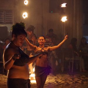 ショーはオーソドックスな南洋系のファイヤーダンスで、むしろ観客側のノリが良い悪いで演者側のテンションに影響が出そうです。誕生日当日の方や記念日の方だけじゃなく、ショー終了後に写真撮らせてもらえました。