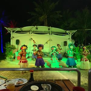ショーはバーベキュー会場の特設ブースでありますが、てっきりプール正面の舞台でやるものと思っていたので、規模の小ささにちょっとがっかり。踊り子は女性2名でした。