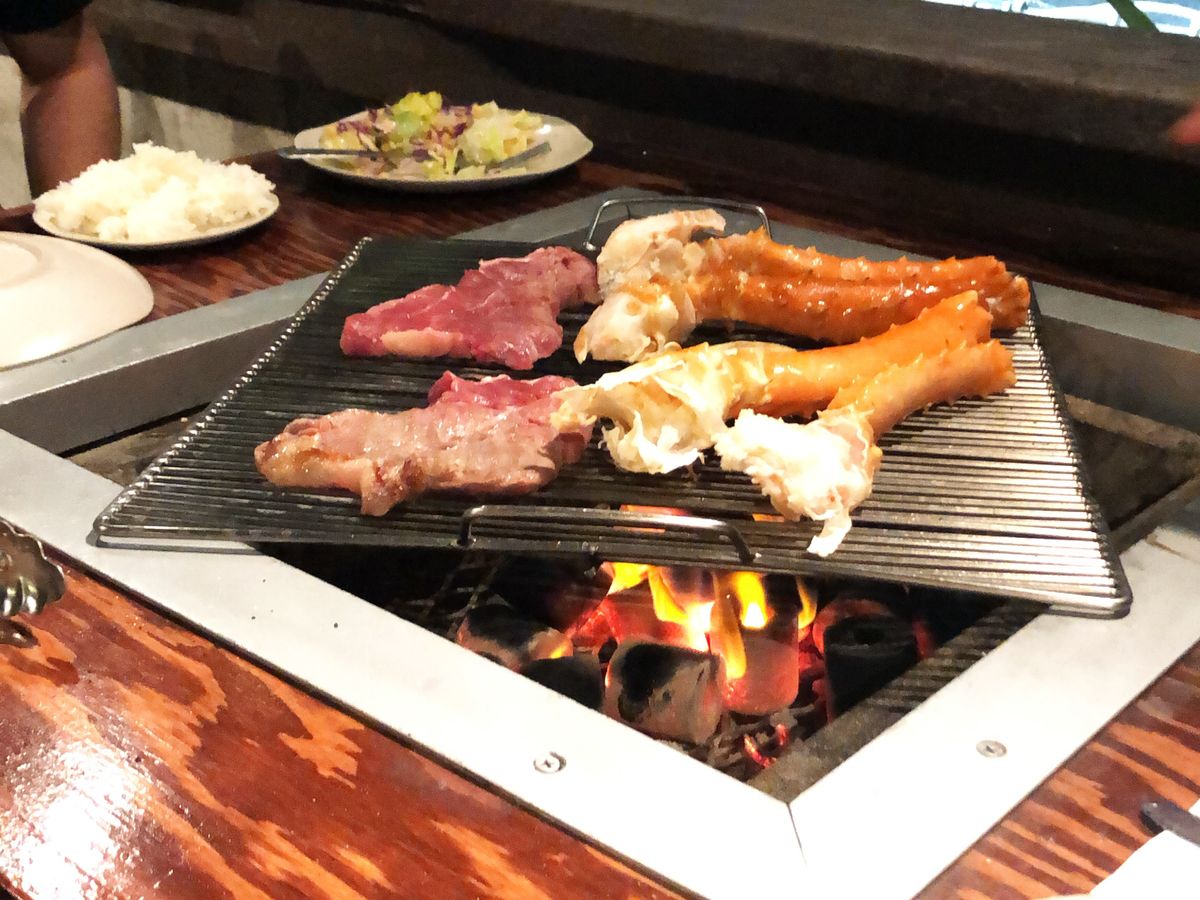 ビールで乾杯をしたらお待ちかねお肉、海鮮の登場です。