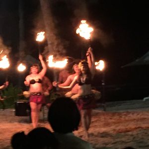 グアムの到着が予定より遅く送迎のバスに間に合わず現地にタクシーで向かいました。食事もボリュームがあり、お肉も柔らかくて美味しかったです!ショーもファイヤーダンスが迫力あり2歳、5歳の息子も釘付けで見ていました。