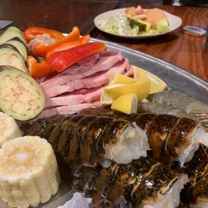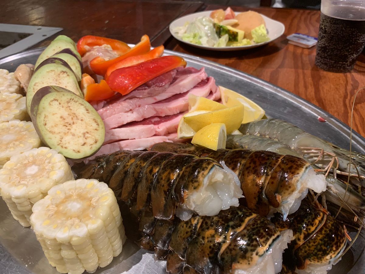 家族で楽しく焼きながら食べました。今回はプライムBBQ2つ、シーフードBBQ1つ頼みました家族3人でぴったりのボリュームでした。ロブスターはプリプリ美味しかったのです。